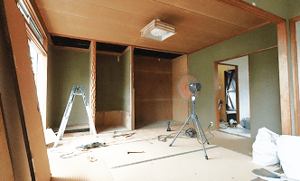 大型の家具やバス・トイレを撤去。間仕切り変更で不要となる壁も撤去し、広い空間が見えてきます。