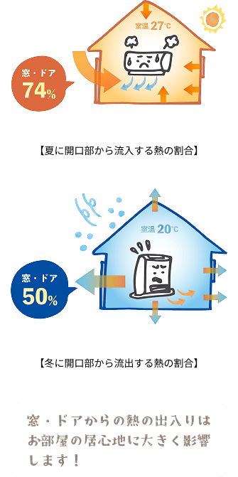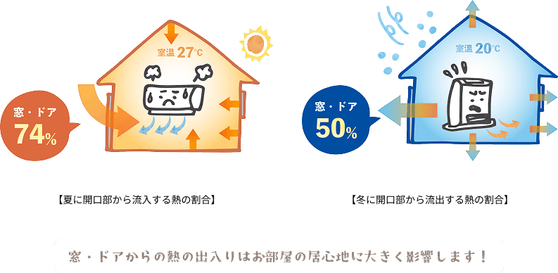 熱はほとんど窓から逃げていくので、内窓の設置やカバー工法で簡単に窓を交換するだけで部屋の環境が大きく改善します。
